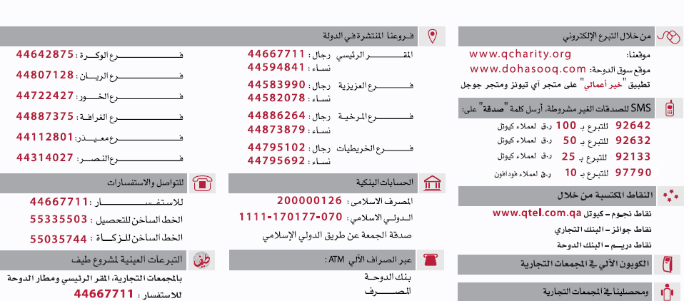 يمكنكم التبرع اون لاين “بالكردت كارد” مباشرة وبسهولة من خلال الموقع الرسمي لجمعية قطر الخيرية من هنا :